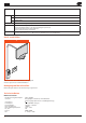 DE Physikalische Daten • Abmessungen (B x H x T) • Gewicht 249 x 280 x 84mm 870g Wandlampe • Leuchtmittel • Nachleuchtdauer • Ausleuchtbare Fläche Leuchtfläche: 50 LEDs, Leistungsaufnahme gesamt: 10W Hintergrundlicht: 2 LEDs je 1,0W, 5000K Die Leuchtmittel sind nicht austauschbar. Nach Ablauf der Lebensdauer muss die Wandlampe ausgetauscht werden. Min. 3 (+/- 1) Sekunden Max. 20 (+/-3) Minuten Max.