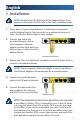 English 1 Installation NOTE: Run the Setup CD-ROM to install the Modem Router. If you cannot run the Setup CD-ROM, refer to this Quick Installation Guide. 1. Power down all your network devices, including your computer(s) and the Modem Router. If you currently use a modem, disconnect it now—the Modem Router replaces your modem. 2. Connect one end of the provided Ethernet cable to your computer’s Ethernet adapter and the other end to an Ethernet port on the back of the Modem Router.