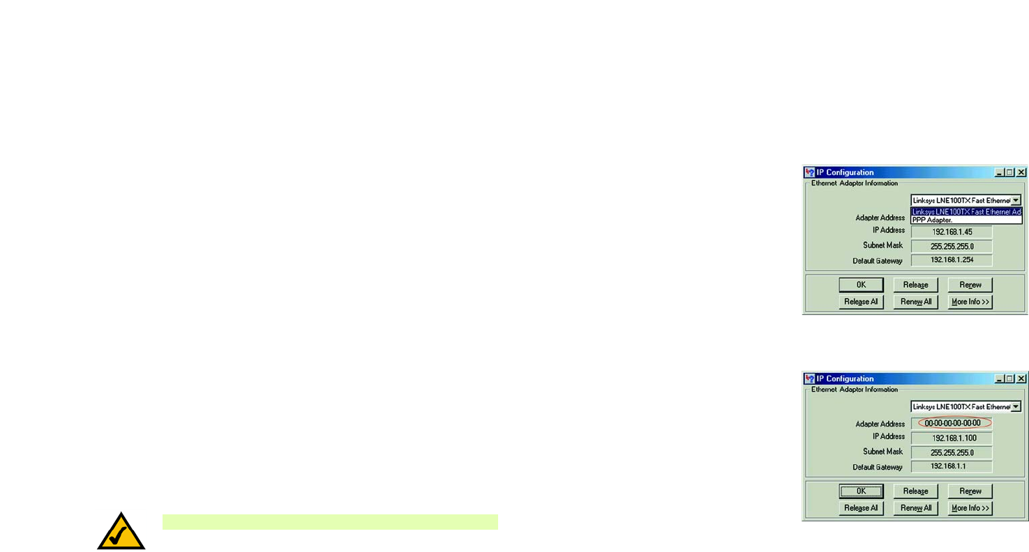 find the adapter’s MAC or IP address in Windows 98, Me, 2000, or XP.