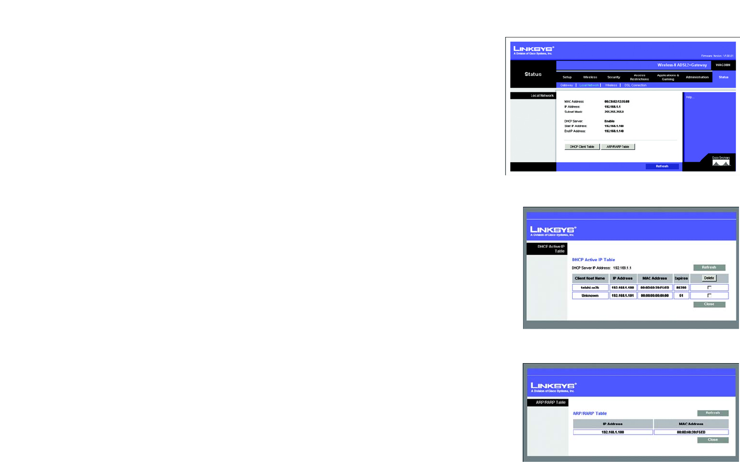 To view the DHCP Client Table, click the DHCP Client Table button. To view the ARP/RARP Table, click the
