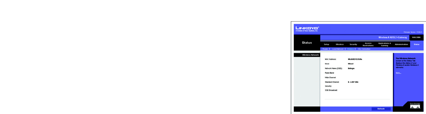 This screen displays information about the Gateway’s wireless network.