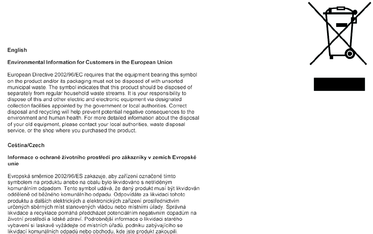 User Information for Consumer Products Covered by EU Directive 2002/96/EC on Waste Electric and Electronic