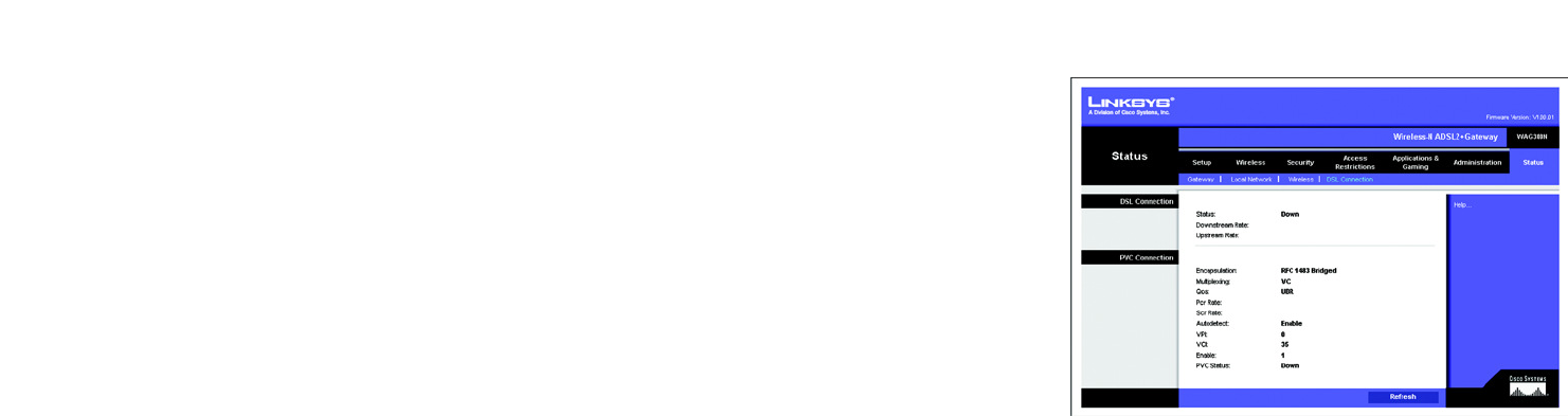 This section shows the following: Status, Downstream Rate, and Upstream Rate.