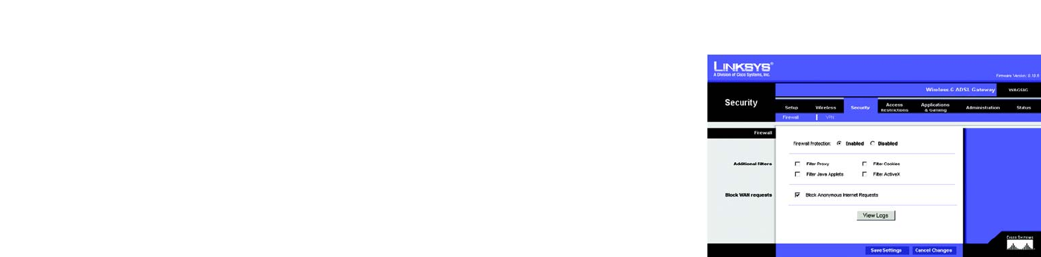 When you click the Security tab, you will see the Firewall screen (see Figure 5-18). This screen contains Filters