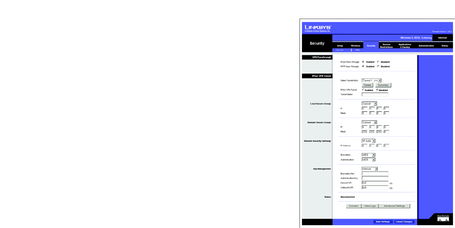 tunnel. Or, you may choose not to encrypt by selecting Disable. In Figure 5-19, DES (which is the default)