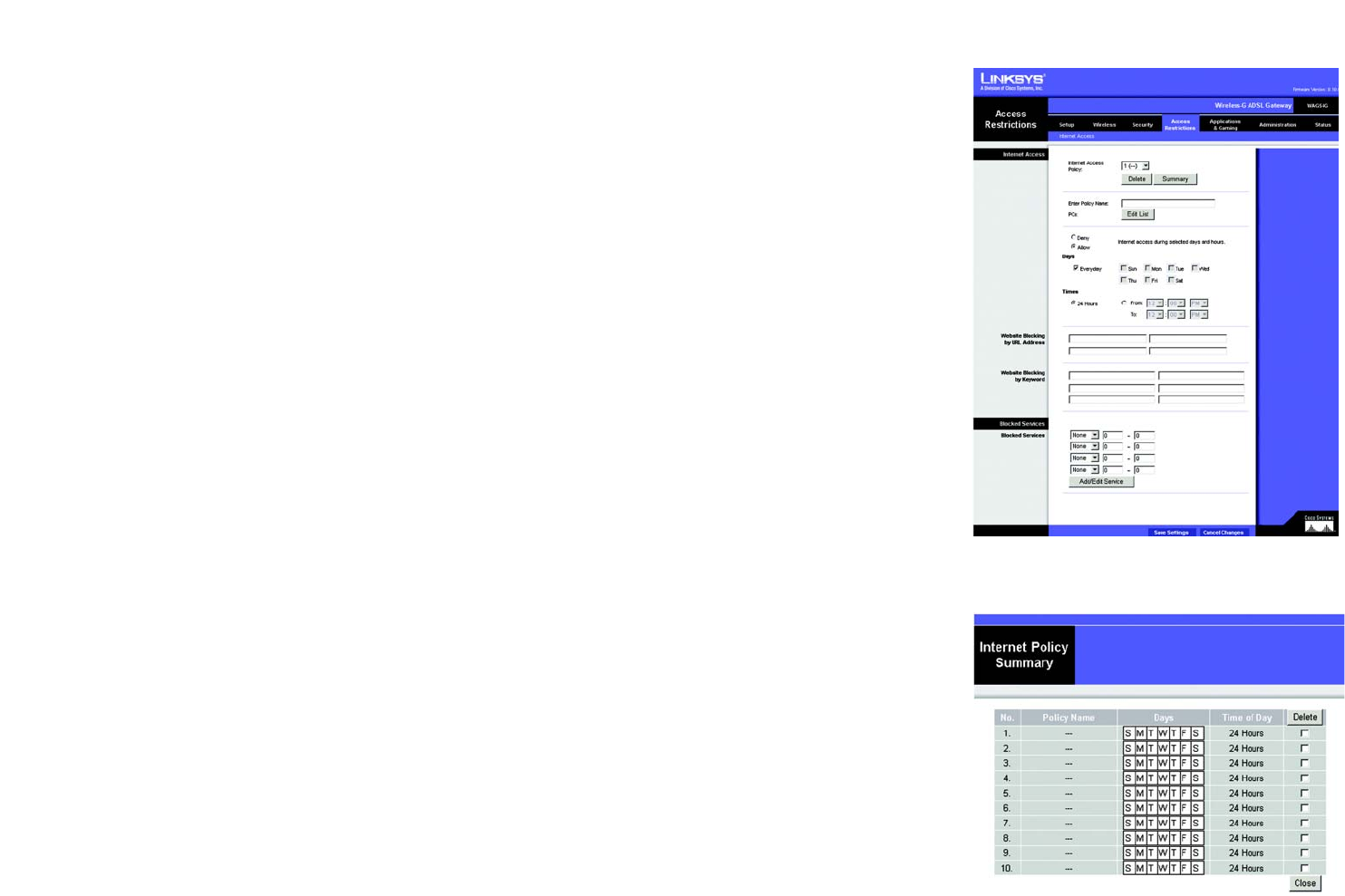 The Access Restrictions tab, shown in Figure 5-22, allows you to block or allow specific kinds of Internet usage.
