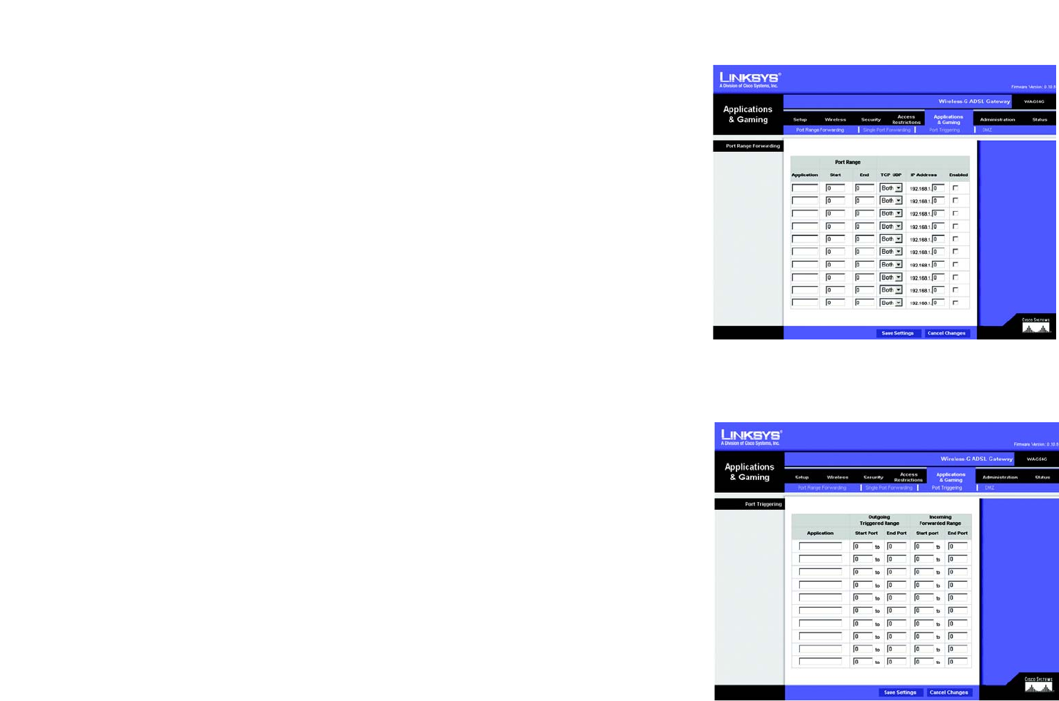 • Start Port and End Port. Enter the starting and ending Outgoing Triggered Range numbers and the Incoming