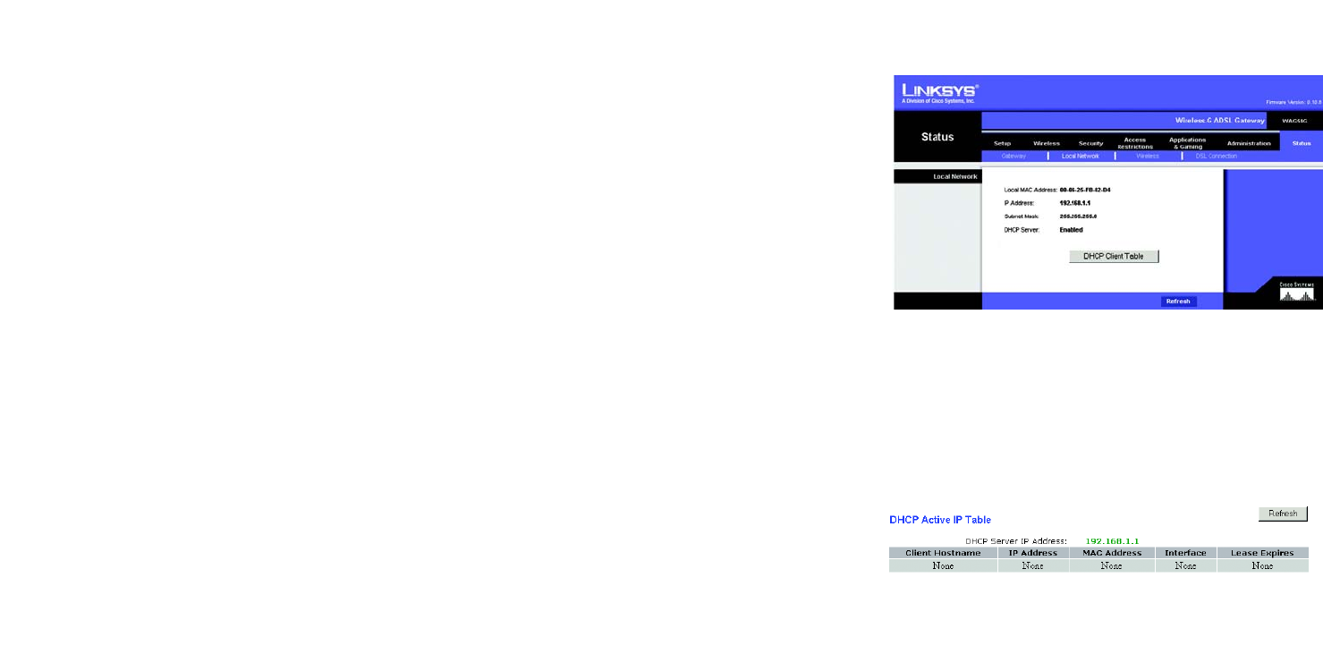 DHCP Clients Table. Click the DHCP Clients Table button to show the current DHCP Client data. You will see the