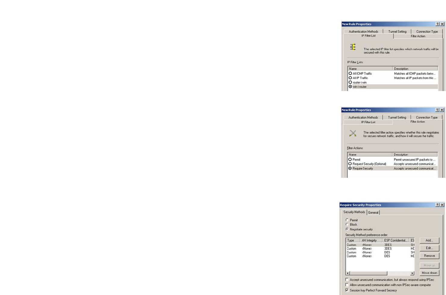 2. Click the Filter Action tab (as in Figure C-11), and click the filter action Require Security radio button. Then,