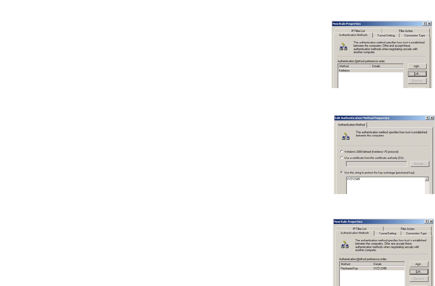 5. Change the authentication method to Use this string to protect the key exchange (preshared key), as