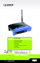 ® A Division of Cisco Systems, Inc. Package Contents • • • • • • Wireless-G ADSL Gateway User Guide on CD-ROM Ethernet Network Cable Phone Cable Power Adapter Microfilter or splitter (not supplied with all models) • Quick Installation 2,4GHz Wireless-G 802.11g ADSL Gateway Wireless Model No. WAG54G (UK/EU) Model No.