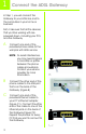 1 Connect the ADSL Gateway In Step 1, you will connect the Gateway to your ADSL line and to the computers in your home or business. First, make sure that all the devices that you’ll be working with are powered down, including your PCs and the Gateway. A Connect one end of the provided phone cable to the wall jack with ADSL service. NOTE: To avoid interference, you may need to place a microfilter or splitter between the phone cable and wall jack. Contact your service provider for more information.