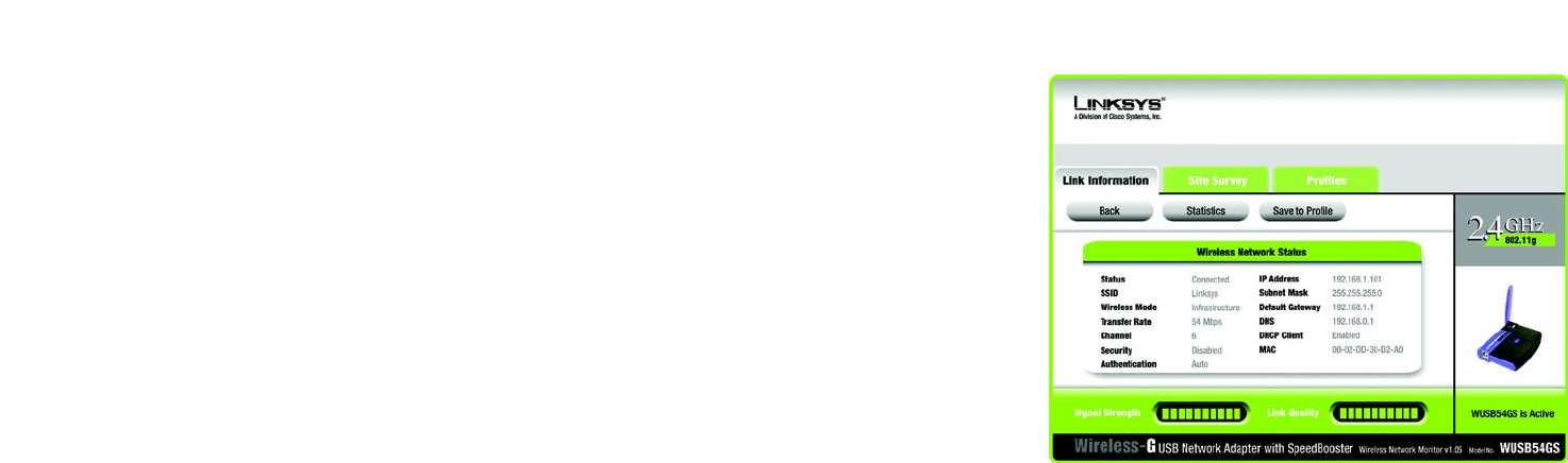 Link Quality - The Link Quality bar indicates the quality of the wireless network connection.