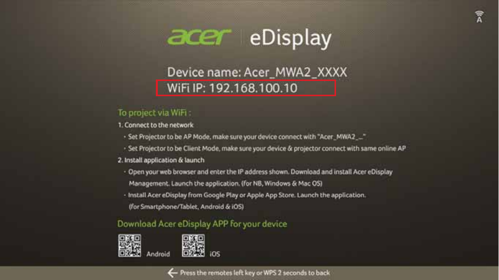 1. On the projector/monitor/TV, go to the eDisplay screen by using that