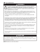 TROUBLESHOOTING WARNING: Before beginning work, shut off the power supply to avoid electrical shock. PROBLEM Fan does not move. POSSIBLE CAUSE 1. Reverse switch not engaged. 2. Power is off or fuse is blown. 3. Faulty wire connection. Noisy operation. 1. Blades are loose. 2. Cracked blade. 3. Full range dimmer switch. 4. Fan is new. Excessive wobbling. 1. Blades are loose. 2. Blade arms incorrectly attached. 3. Unbalanced blades. 4. Fan not securely mounted.