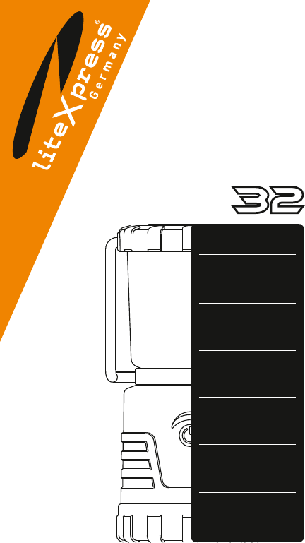 camp 32 ANSI FL 1 NATURAL WHITE HIGH NATURAL WHITE LOW COOL WHITE HIGH COOL WHITE LOW WARM WHITE HIGH WARM WHITE LOW 380 70 250 50 160 35 LUMENS LUMENS LUMENS LUMENS LUMENS LUMENS 100cd 20cd 80cd 15cd 50cd 10cd 20m 9m 18m 8m 14m 6m 12h 75h 24h 140h 24h 140h 1m © LiteXpress GmbH, Germany Duelmener Straße 92 DE-48653 Coesfeld Service ☎ +49 2541 967870 www.liteXpress.