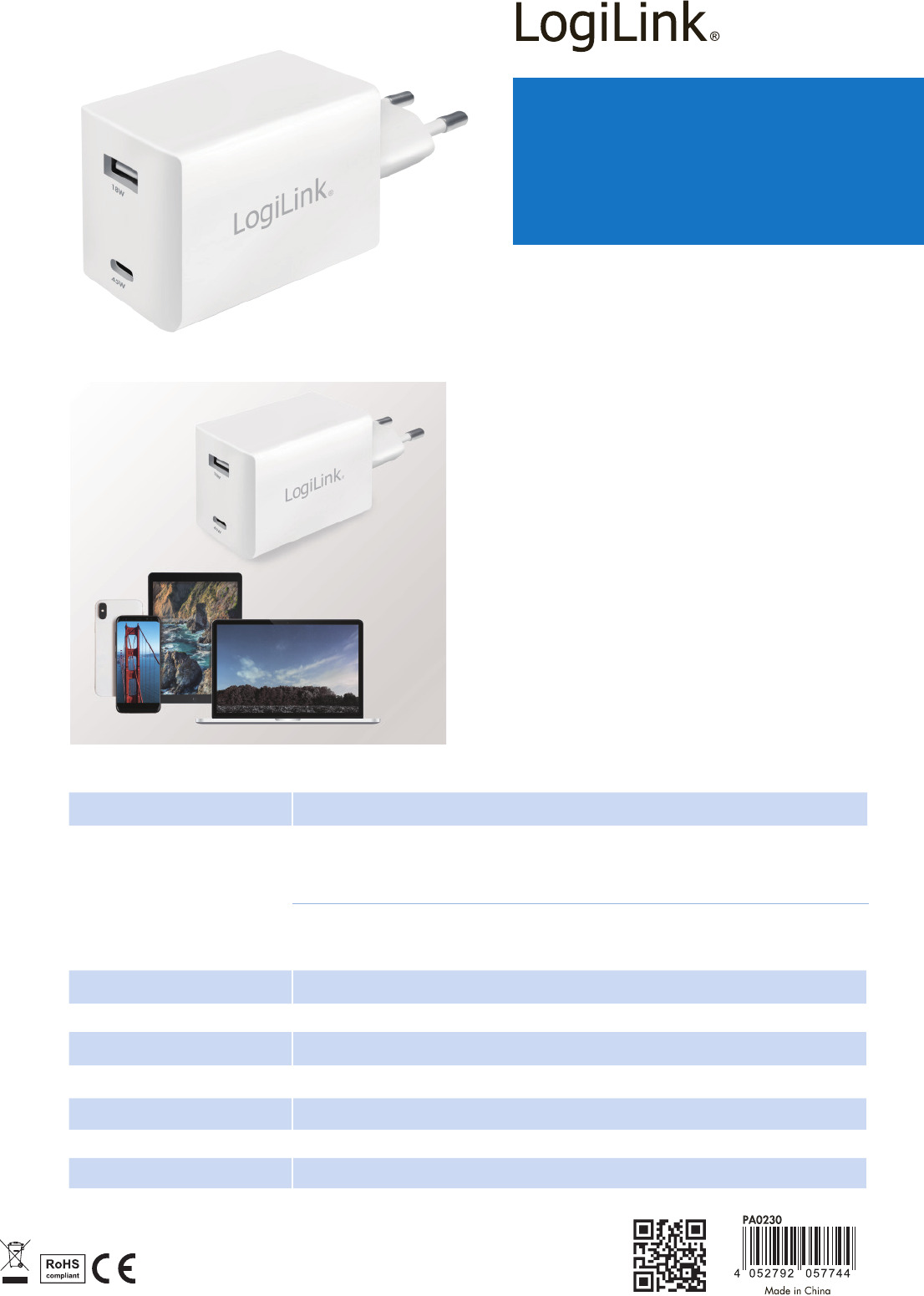 USB-C: 5V 3A (15W) / 9V 3A (27W) / 15V 2A (30W) 20V 1.5A (30W) max.