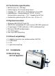 2.2 Technische specificaties • • • • MP3 bit-rate: 64 - 320 kbps Audio-uitgang: 3,5 mm jack-plug stereo Voeding: 3 V - 150 mA (2 x AA-batterijen) of via USB Hoofdtelefoon: Frequentiebereik 100 Hz - 20 kHz / Harmonische vervorming < 1,5% / Impedantie 32 Ohm • Aanbevolen gebruikscyclus 90 min. aan / 30 min. uit 2.