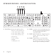 KEYBOARD FEATURES - LIGHTING FUNCTIONS 1 2 3 4 1. FN + F5 key: Change the lighting effect. There are 7 onboard effects: 1. Color wave (left to right) 2. Color wave (right to left) 3. Color wave (center out) 4. Breathing 5. Color cycling 6. Ripple 7. Solid Cyan color 4 English 2. FN+F6: Load the customized lighting profile saved in Logitech Gaming Software. The default lighting profile is colorwave effect. 3. FN+F7: Adjust brightness. Toggles between 5 levels - 0%/off, 25%, 50%, 75%, 100%/Max. 4.