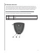 B Power Indicates that the RF Wireless Extender is powered by either AC