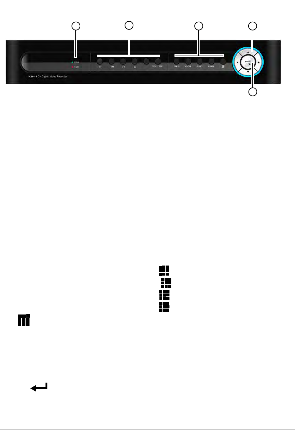 1/5: Press once to display channel 1. Press twice and press 1/5 to view channel 5.
