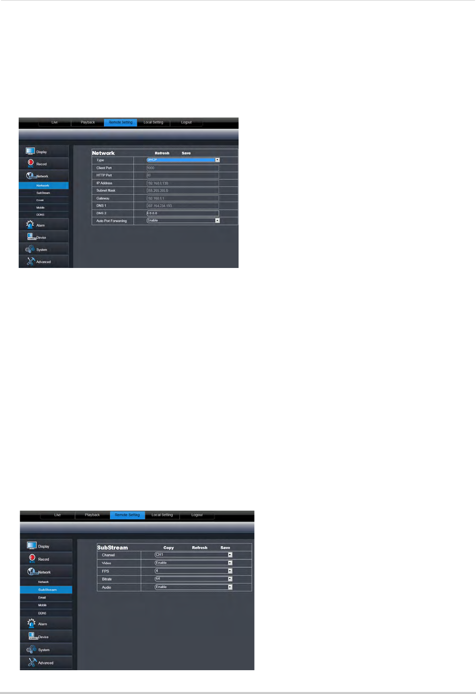 The basic network menu allows you to configure the network protocol type (DHCP or