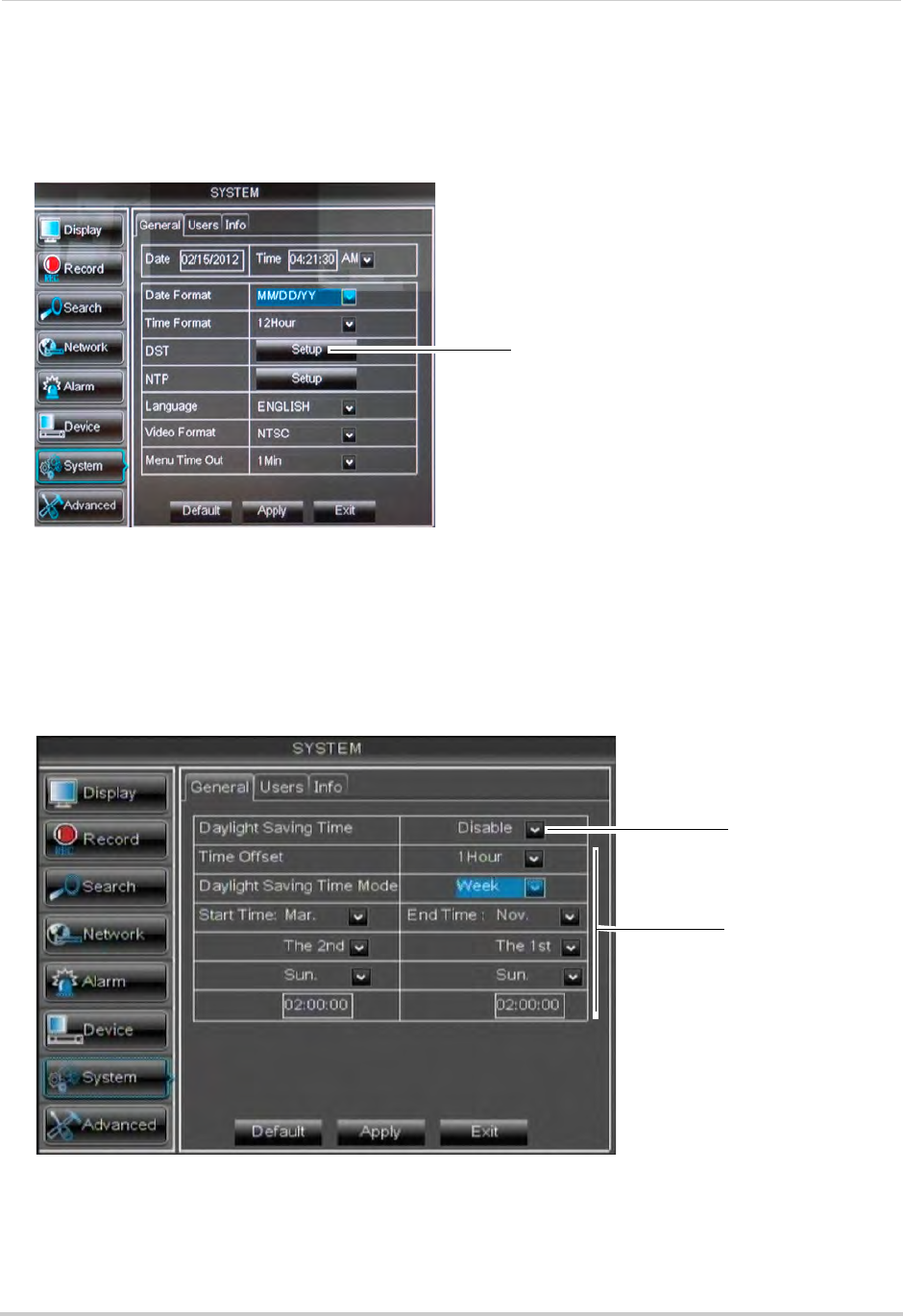 light Saving Time Mode: Select Week or Date. This allows you to select whether DST