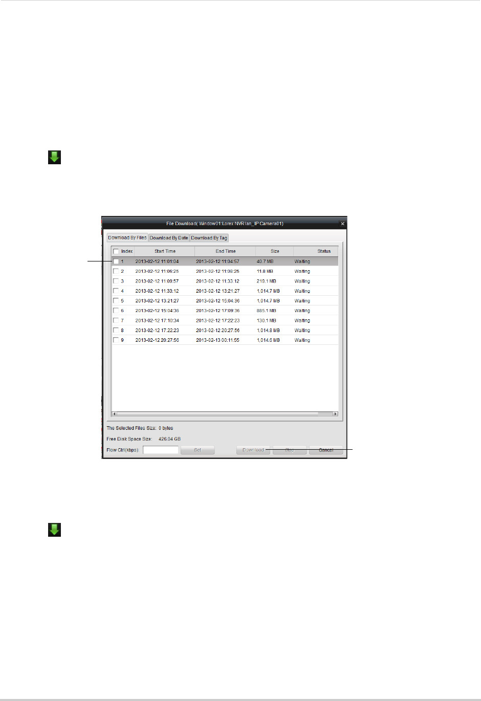 • Download video based on a specified start and end time.