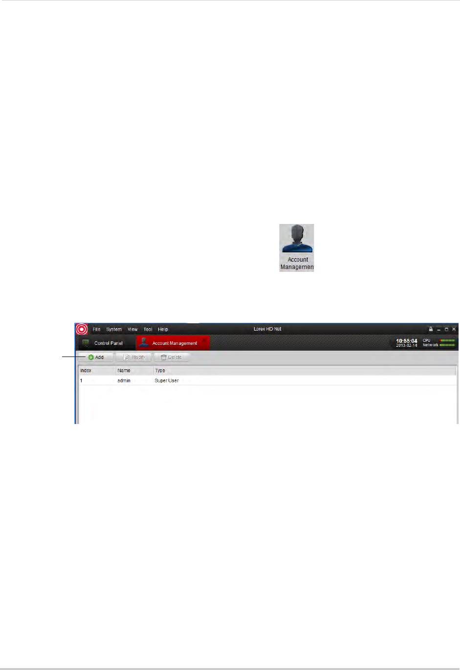 The Super User may add, modify, or delete any user account.