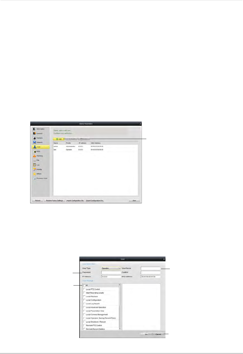 4 At the bottom of the screen, select permissions that will apply to the user account.