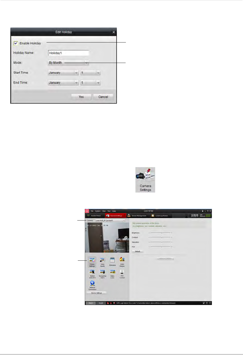 The Camera Settings menu allows you to configure settings for connected cameras.