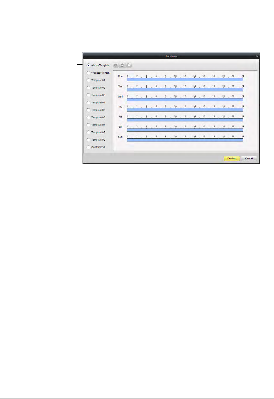 • In the Templates menu, times when Tampering Alarms are enabled are shown as light blue.