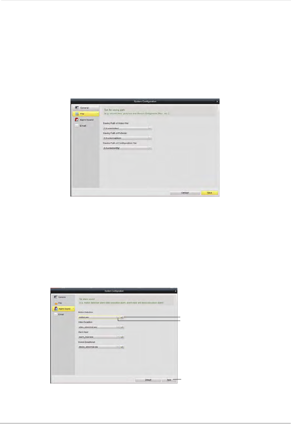 The Alarm Sound menu allows you to configure the audio alerts that will play when events