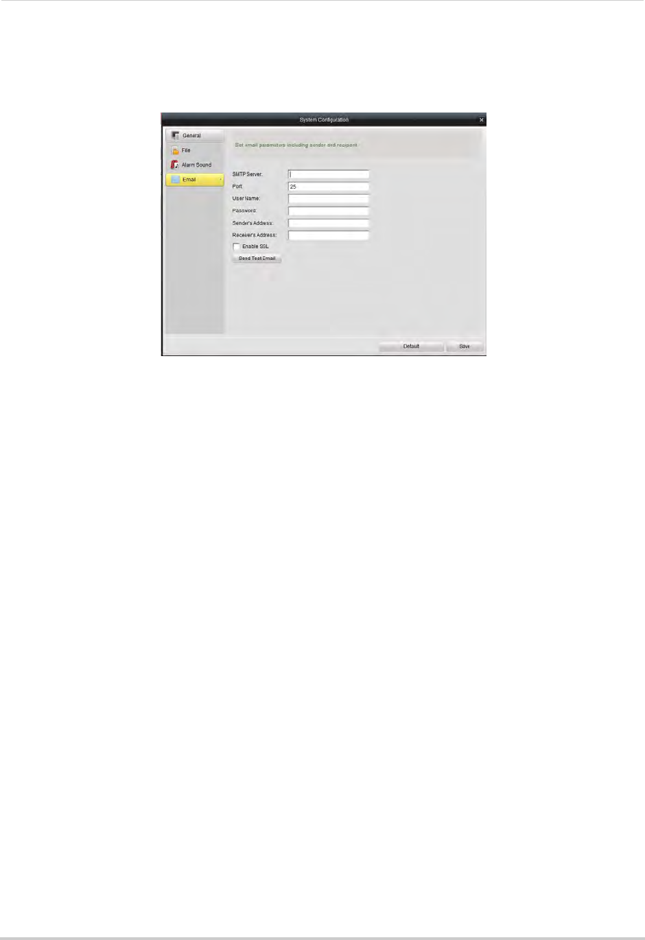 The Email sub-menu allows you to configure outgoing email settings for the client