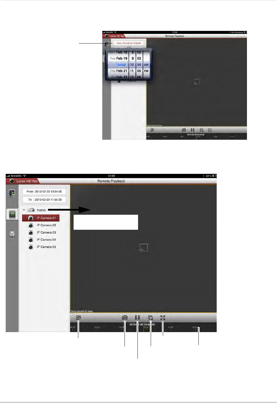 4 Drag the NVR or camera to the display area to start playback. Use the on-screen controls.