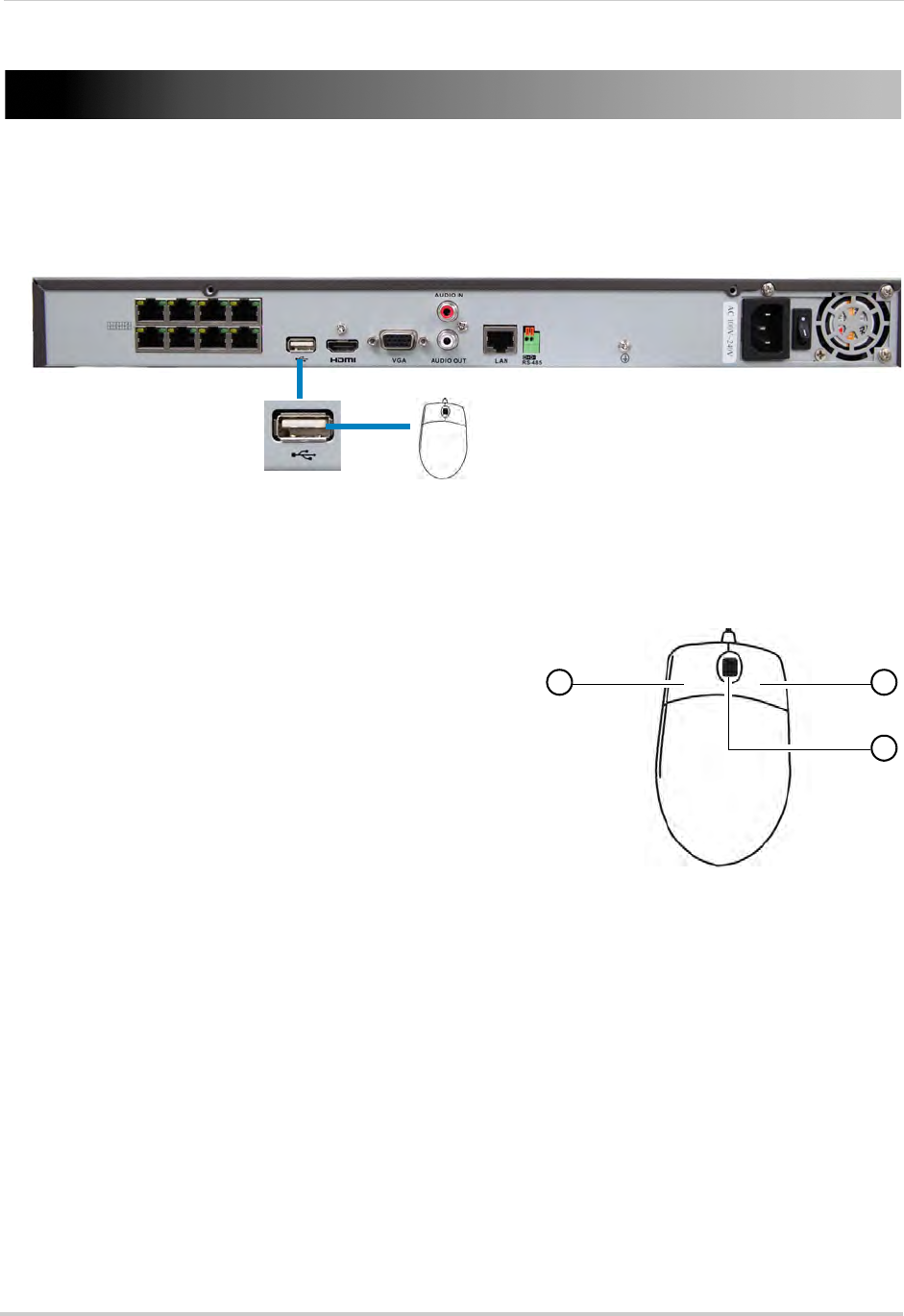 The NVR is designed for mouse navigation. To use a USB mouse (included), connect the