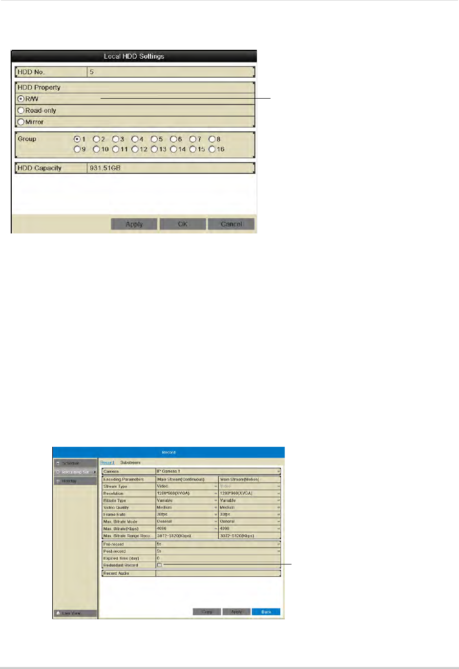7 If you are configuring a mirror hard drive, you must now enable redundant recording in your