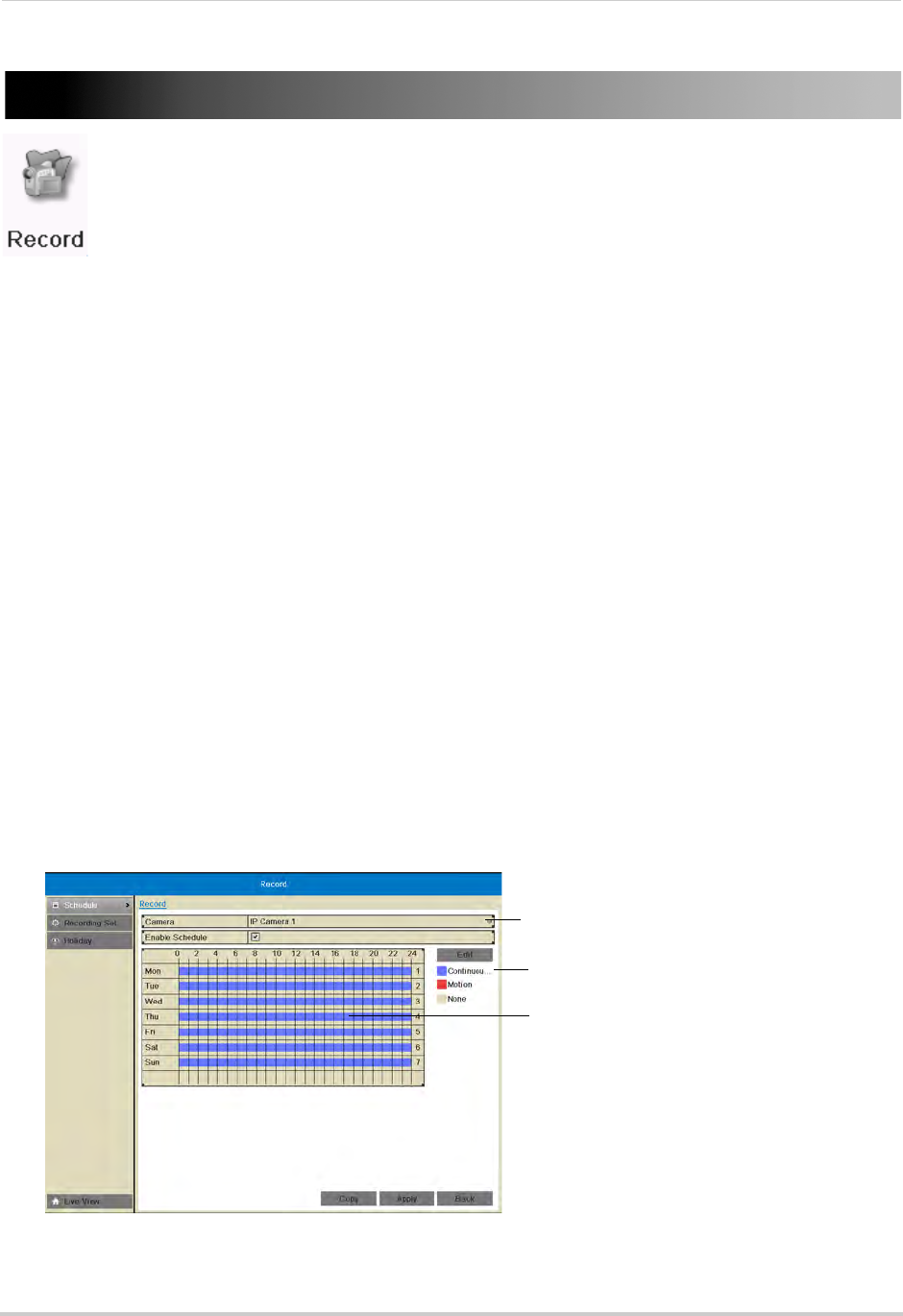 5 Click and drag inside the schedule to apply the currently selected recording type.