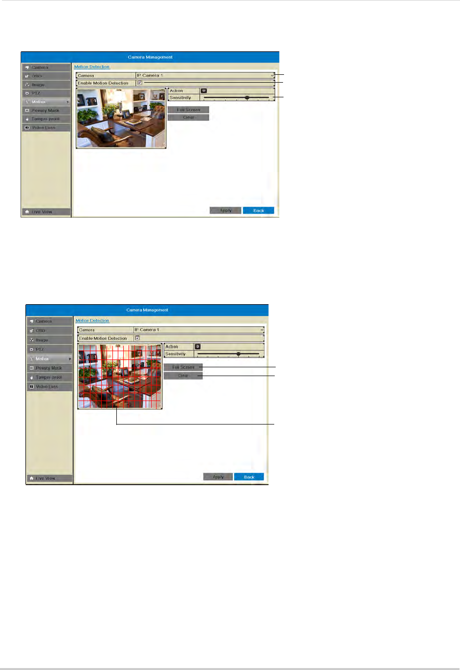 • Click and drag to enable/disable areas of the screen for motion detection.