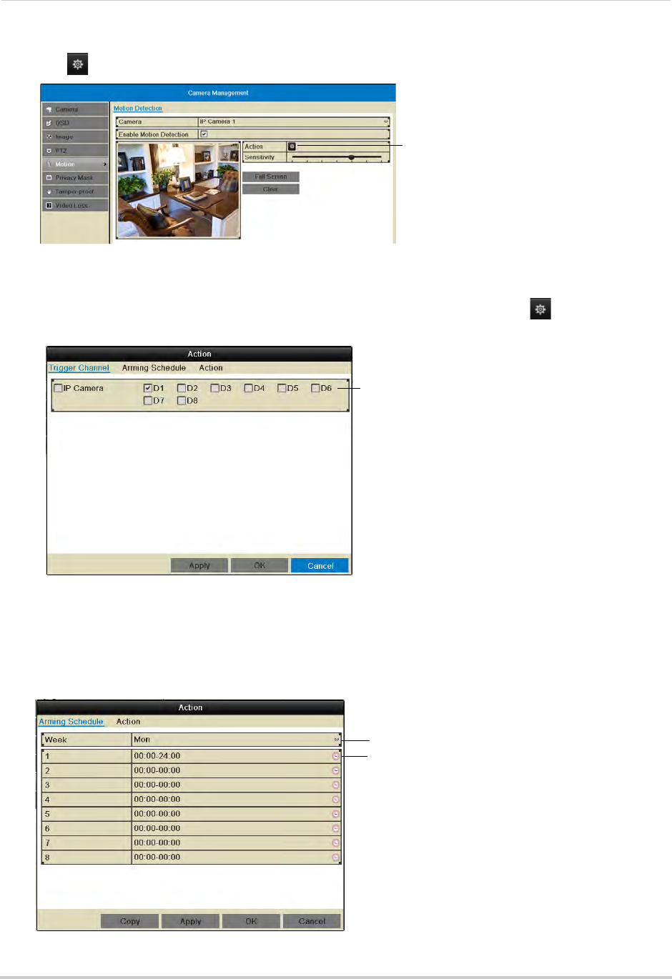 4 In the Trigger Channel tab, select which channels that will start to record when motion
