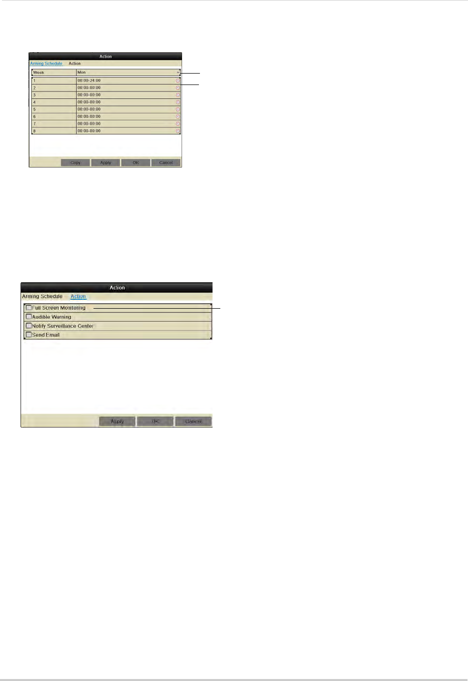 6 In the Action tab, check the alert actions that you want to occur if video loss occurs on the
