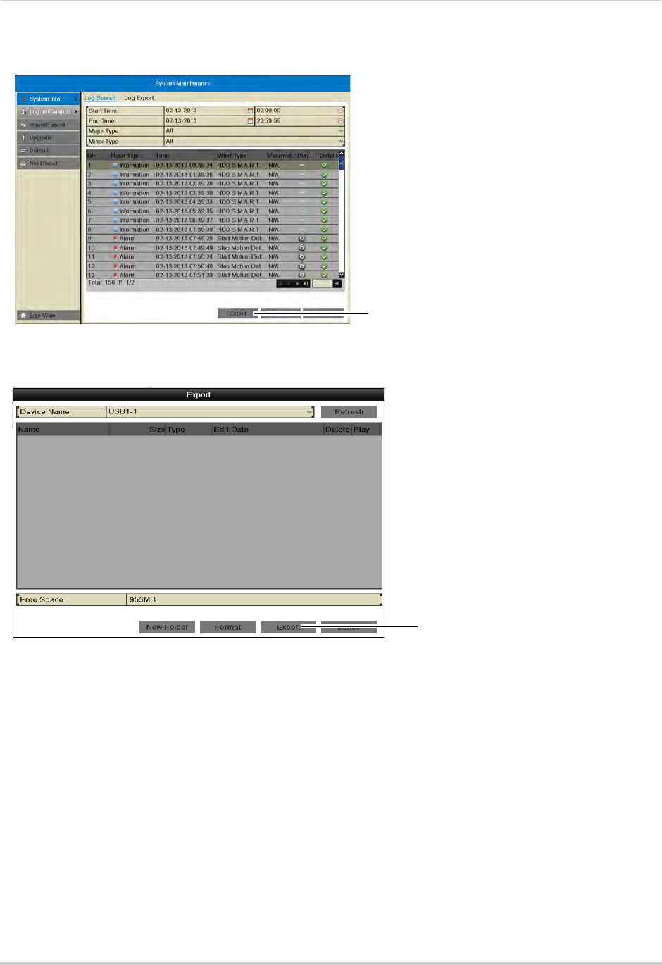 4 Click Export again to export the list of system logs. Wait for the export to complete before