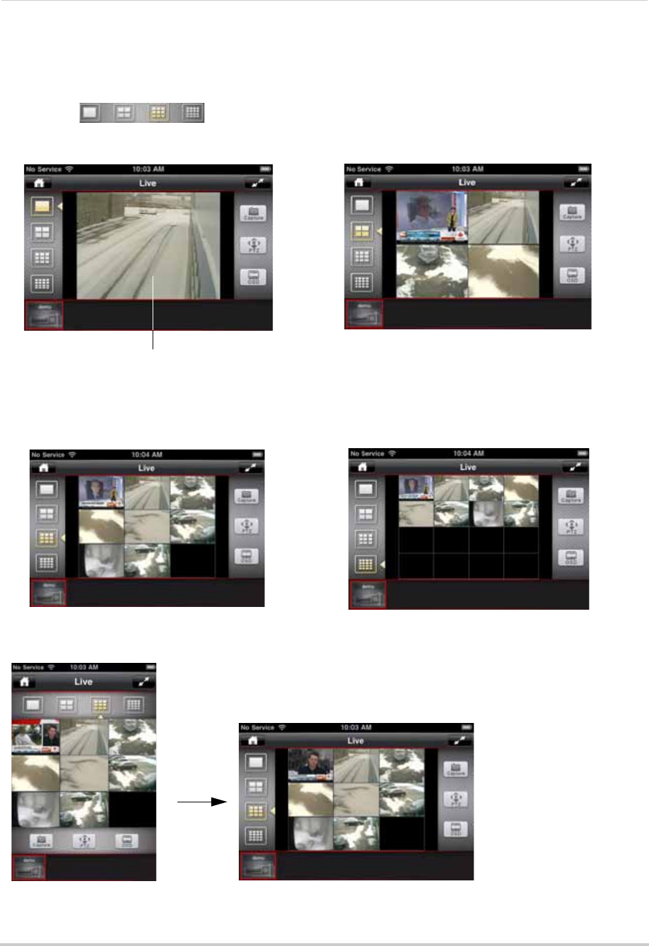 - 3. : Press to switch between full-screen single channel, quad, and split-screen display views.