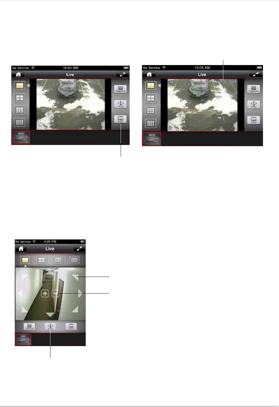 - . Live viewing: Show/hide onscreen display (OSD)