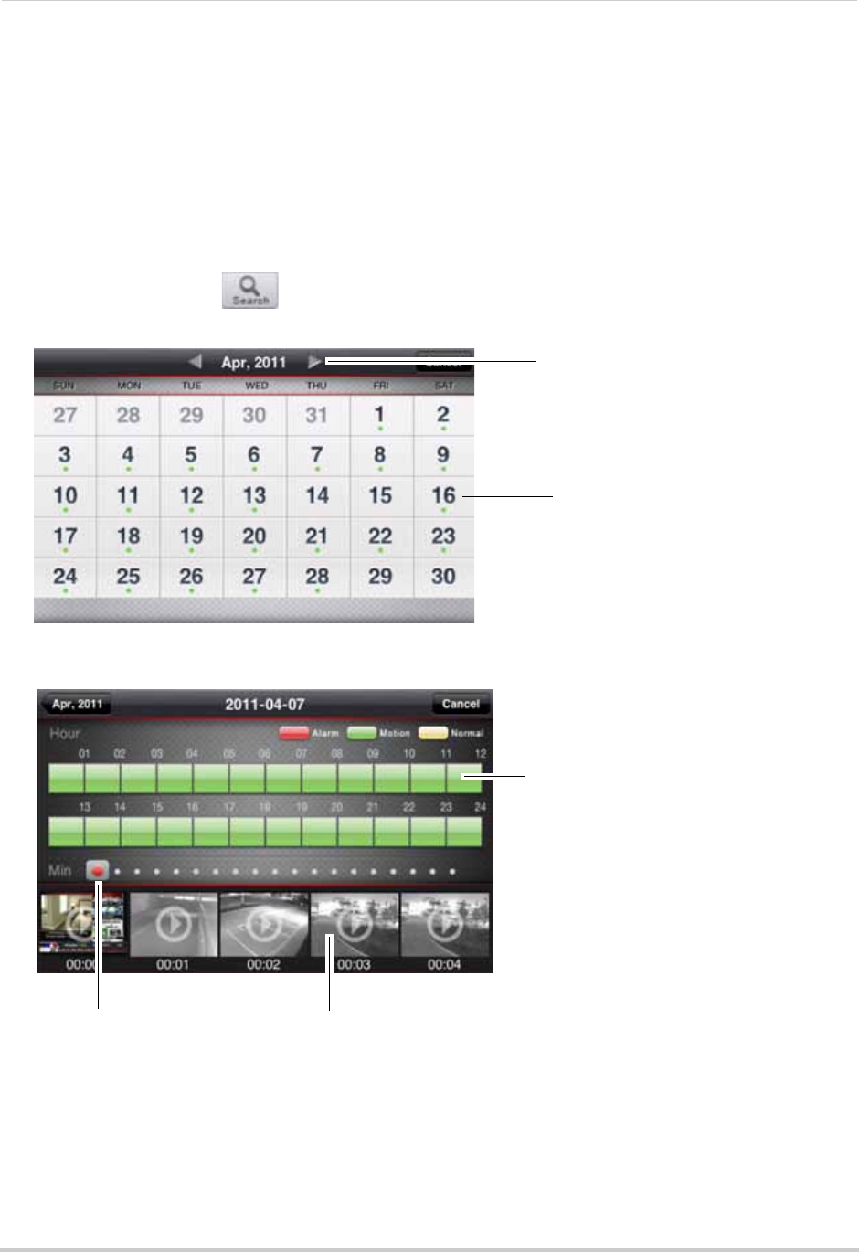 The Search menu allows you to search for recorded video on your DVR.
