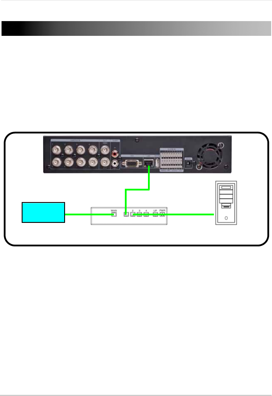 - a. Connect an Ethernet cable to the LAN port on the rear panel of system; connect the other end of the Ethernet cable to an empty LAN port on your router or switch (not included).