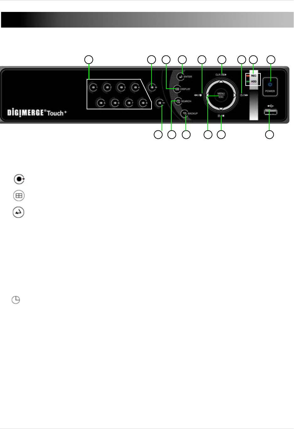 - 8. LEDs: REC will be solid red during recording; HDD will flash green when the system is accessing the HDD.