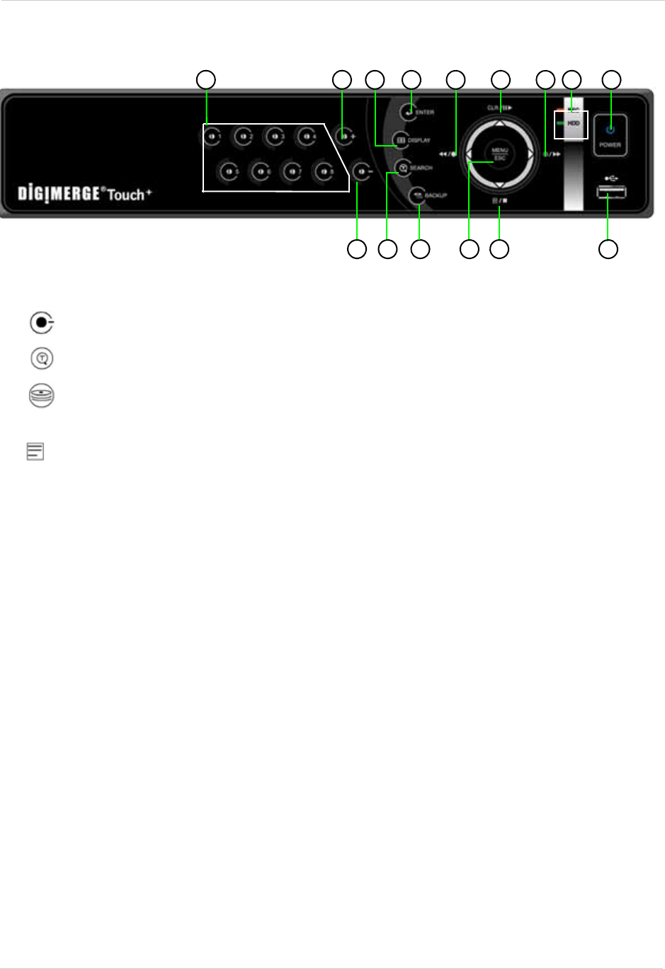 - 8. LEDs: REC will be solid red during recording; HDD will flash green when the system is accessing the HDD.