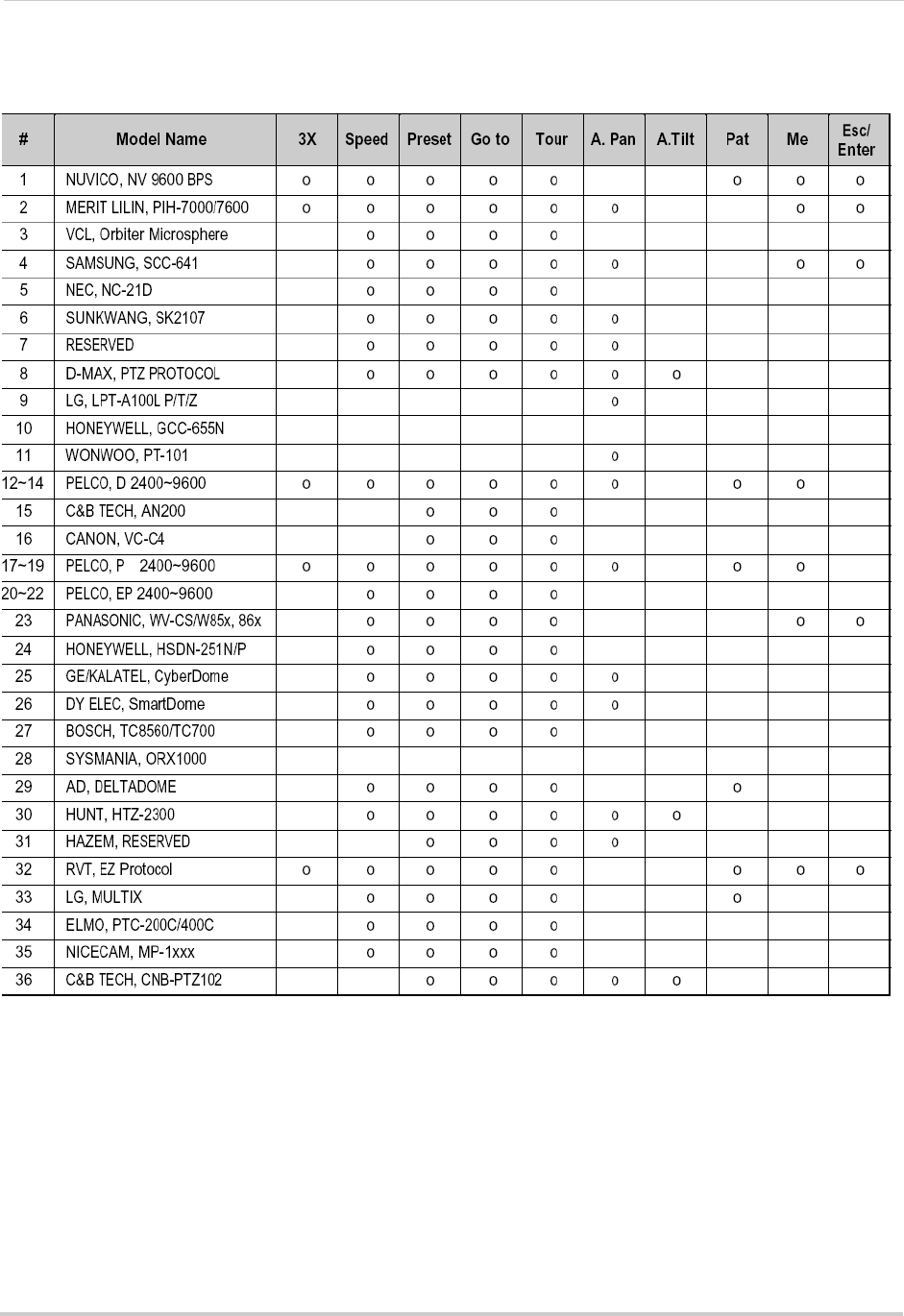 NOTE: The default baude rate is 9600, unless otherwise stated in the system’s Camera menu