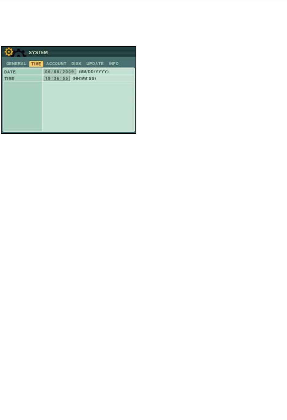 - 1. Under the Time tab, select DATE and press the ENTER button. Enter the month, day, and year.